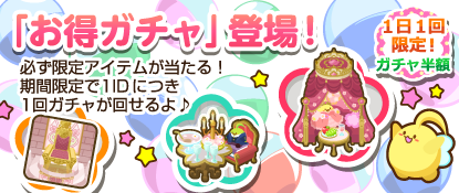 ※お得ガチャは1IDにつき「1日1回」まわせるよ♪